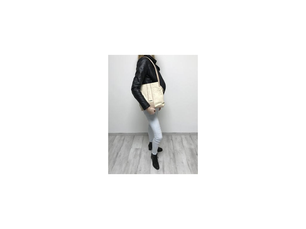 Elegantná kabelka do ruky alebo cez plece v béžovej farbe vhodná na každú príležitosť. Kabelka s dvoma držadlami. Vyrobená z ekokože.