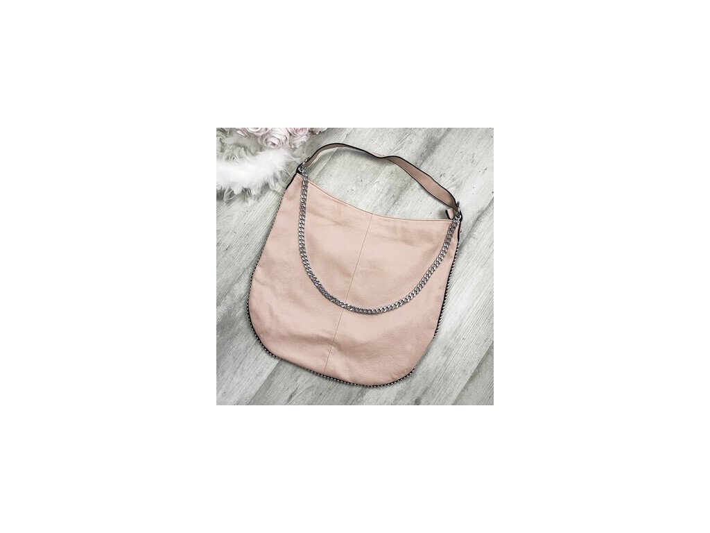 Praktická a štýlová veľká shopper kabelka v ružovej farbe s retiazkou, vyrobená z eko kože . Kabelka je lemovaná kovovou guličkovou retiazkou. Vhodná na nosenie v ruke, na predlaktí alebo cez plece.