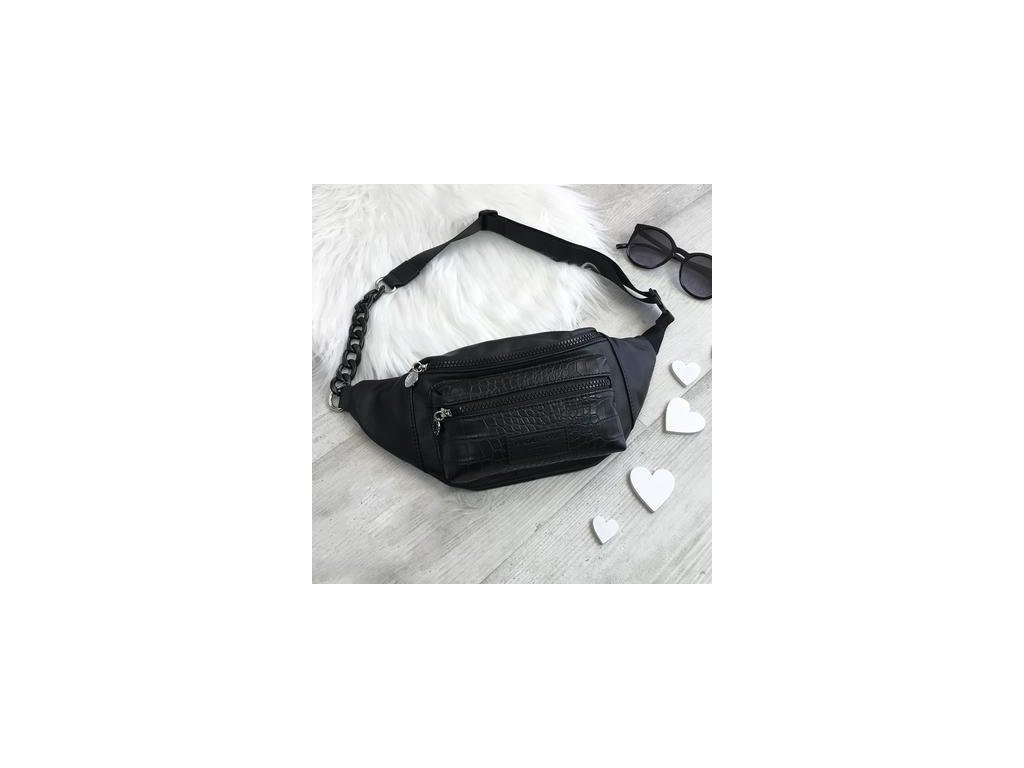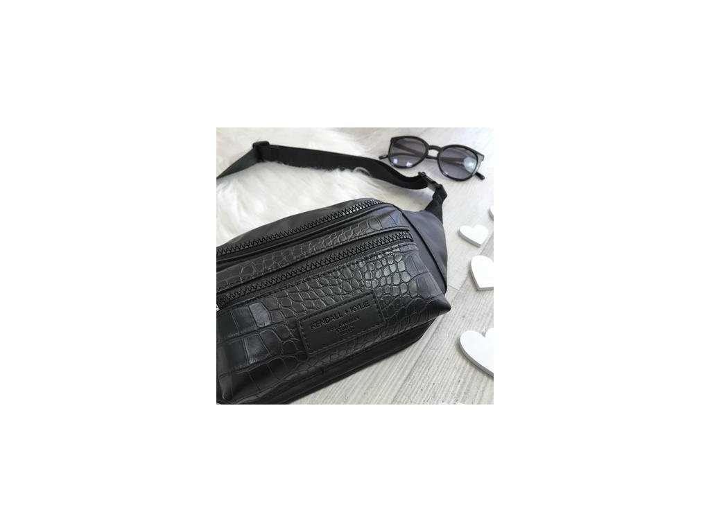 Priestranná ľadvinka z kolekcie KENDALL + KYLIE v čiernej farbe s 2 vreckami na zips, vyrobená z ekologickej kože.