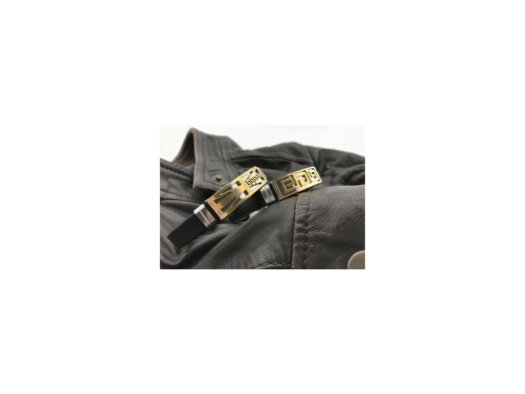 Náramok v kombinácii čierneho kaučuku a chirurgickej ocele v zlato-striebornej farbe, dĺžka: 210 mm, šírka: 10 mm.