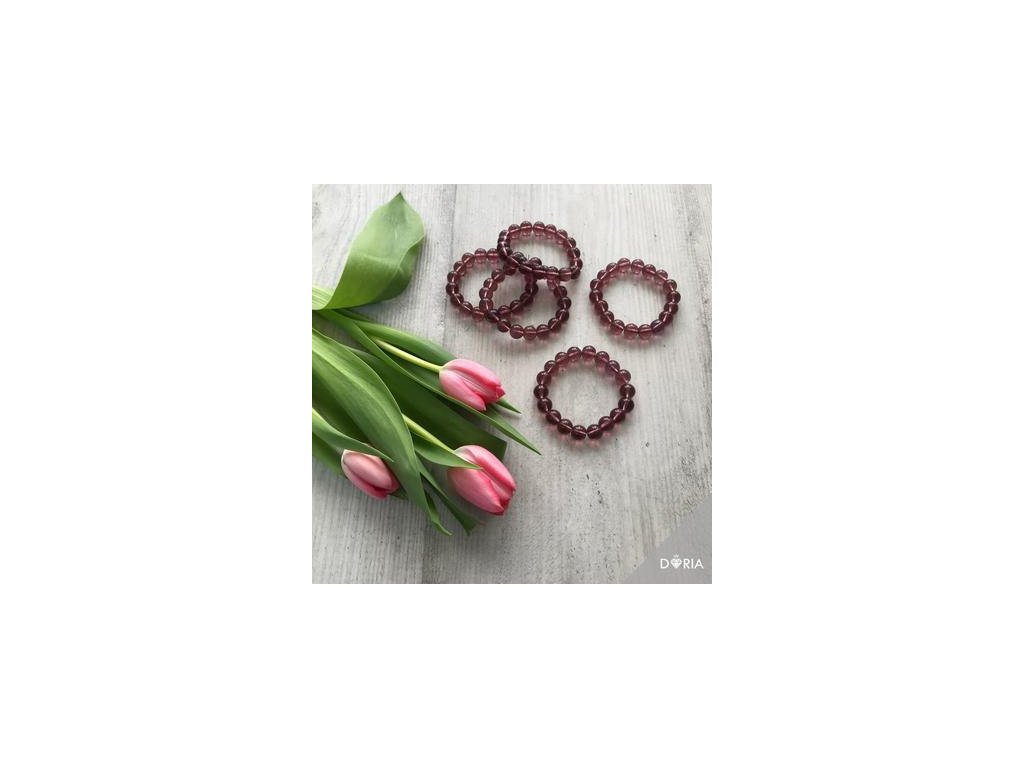 Náramok naťahovací (na gumičke) zo sklenených korálok v hnedo - fialovej farbe, priemer korálok: 10 mm. Veľkosť náramku sa prispôsobí ruke