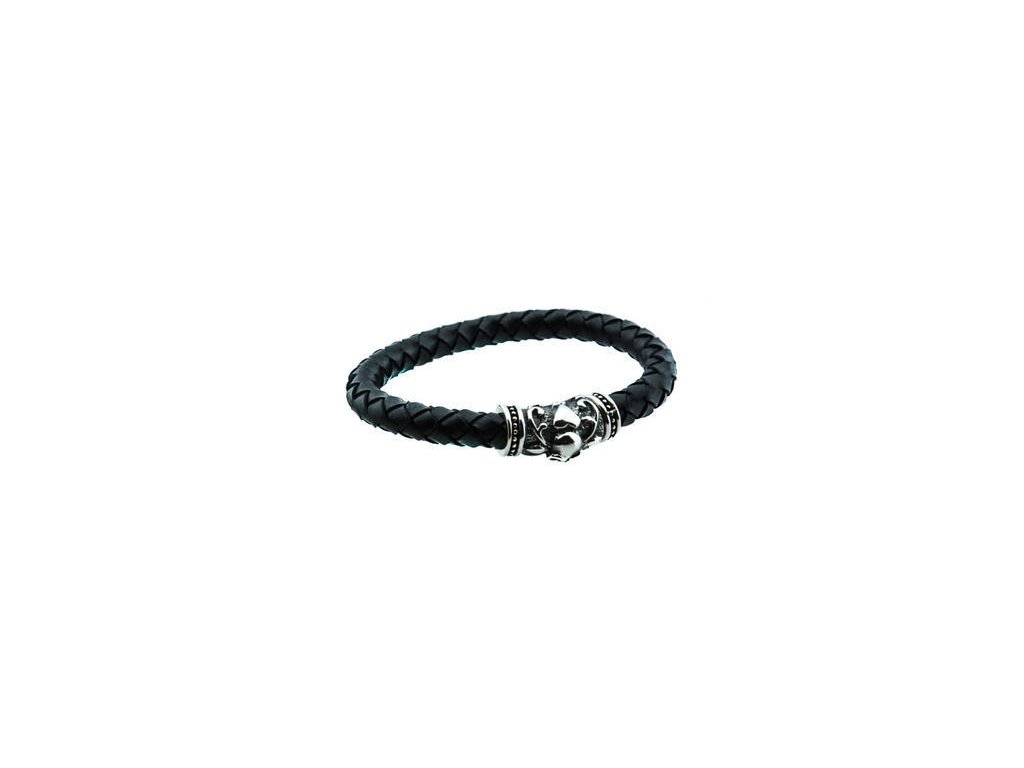 Náramok v kombinácii čiernej kože a chirurgickej ocele v striebornej farbe, dĺžka: 210 mm, šírka: 8 mm
