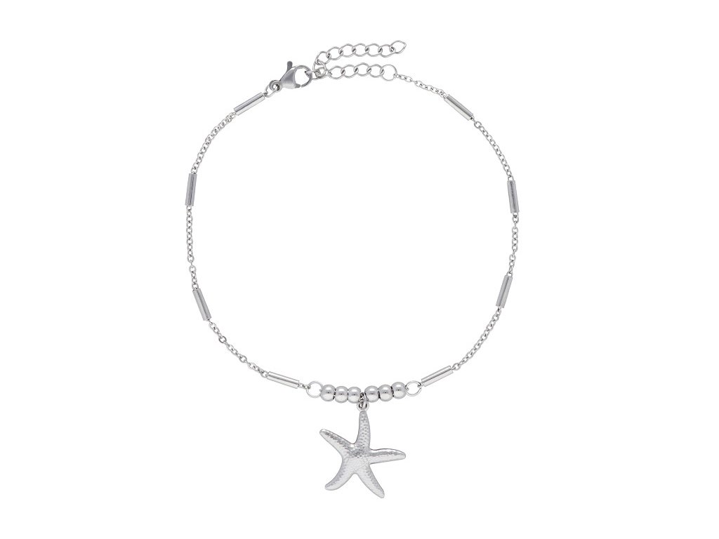 Náramok na nohu s korálkami s hviezdicou z chirurgickej ocele v striebornej farbe, dĺžka: 210 + 30 mm, šírka: 1,5 mm