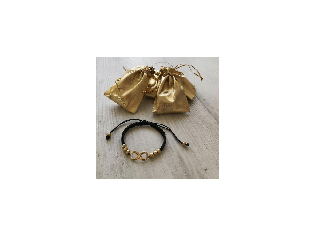 Náramok ( nekonečno ) na šnúrke so zlatými korálkami z chirurgickej ocele v zlatej farbe. Veľkosť náramku je možné nastaviť podľa potreby.