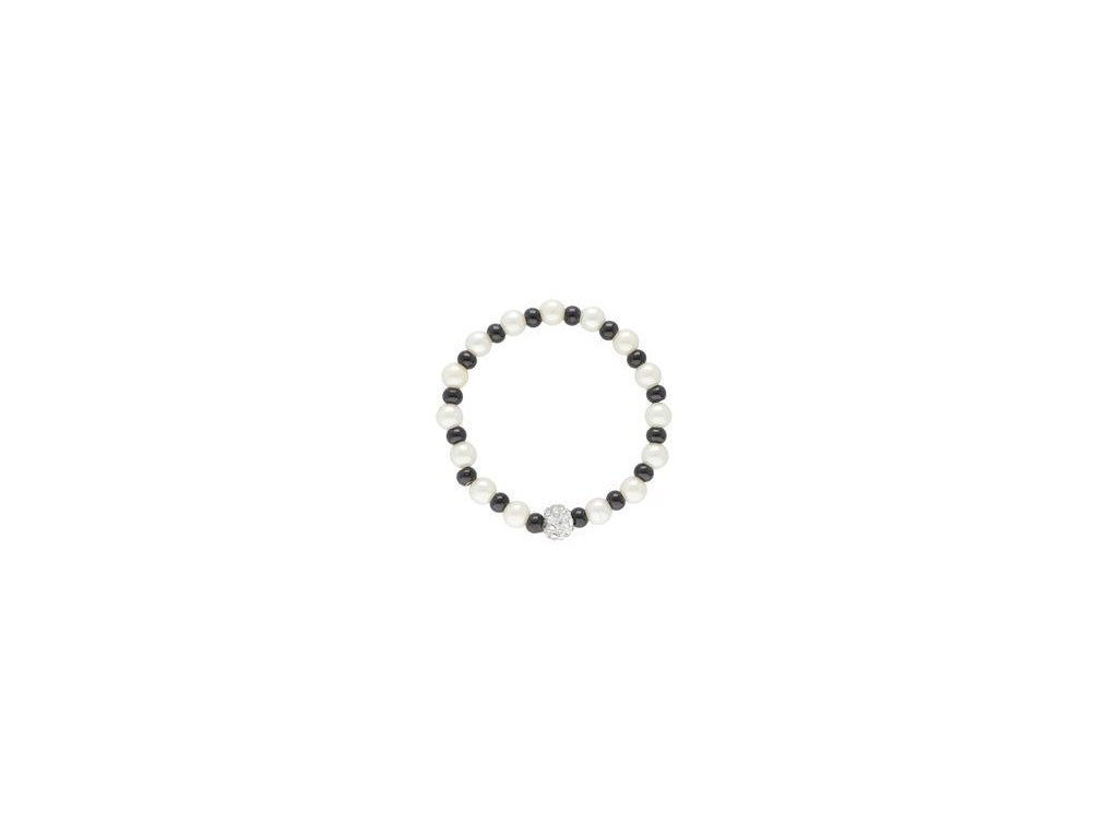 Náramok naťahovací (na gumičke) s perličkami a čiernymi korálkami, priemer: 58 mm. Veľkosť náramku sa prispôsobí ruke.