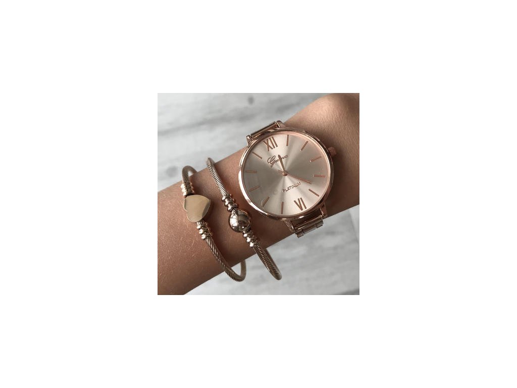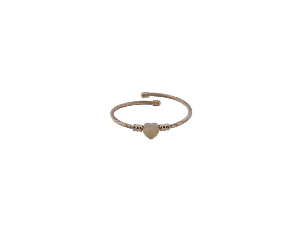 Pevný náramok so srdiečkom z lanka z chirurgickej ocele vo farbe ružové zlato, priemer: 65 mm, šírka: 3,4 mm. Veľkosť náramku sa prispôsobí obvodu ruky vďaka materiálu, z ktorého je vyrobený.