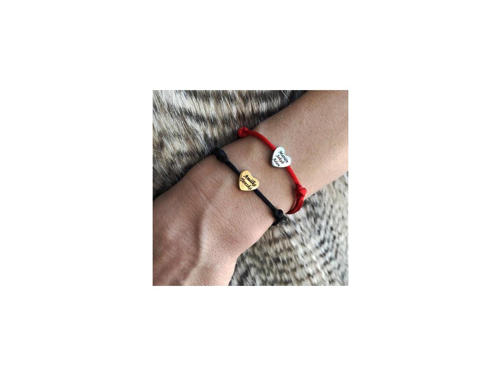 Náramok s menom na čiernej šnúrke so srdcom E234