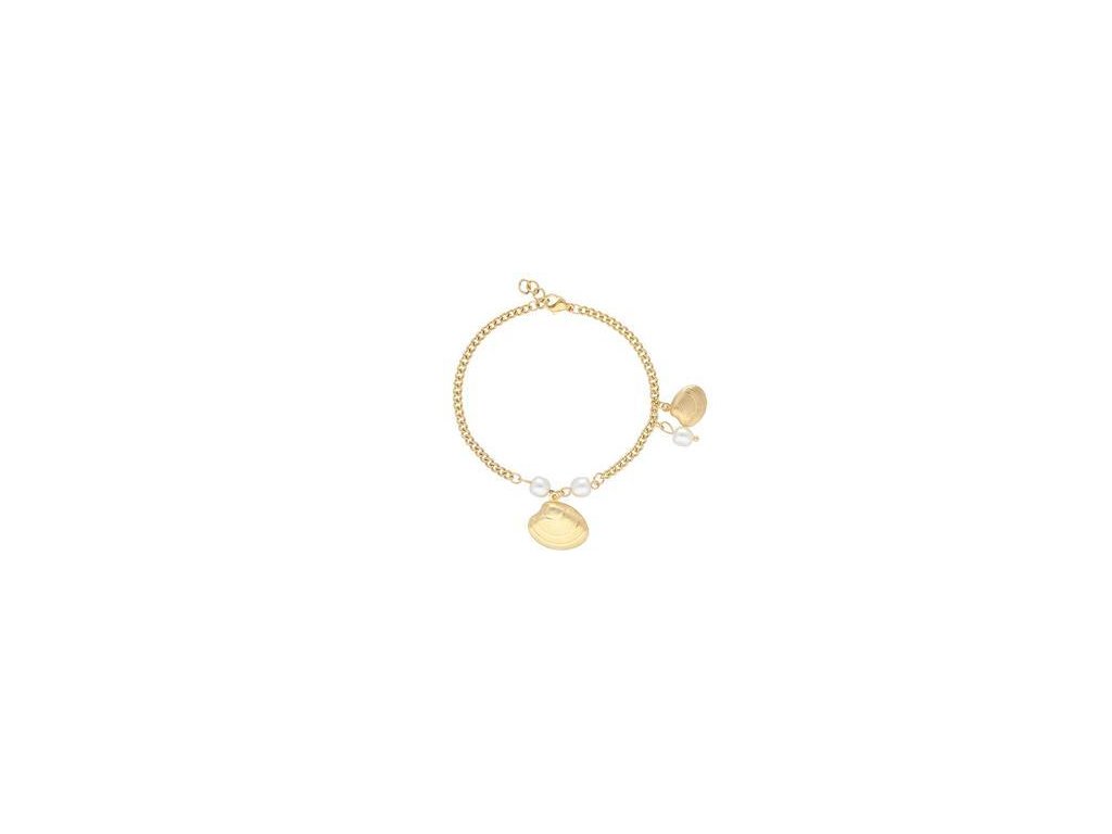 Elegantný náramok zlatý s príveskami s mušličkami z chirurgickej ocele, dĺžka: 180 + 10 mm