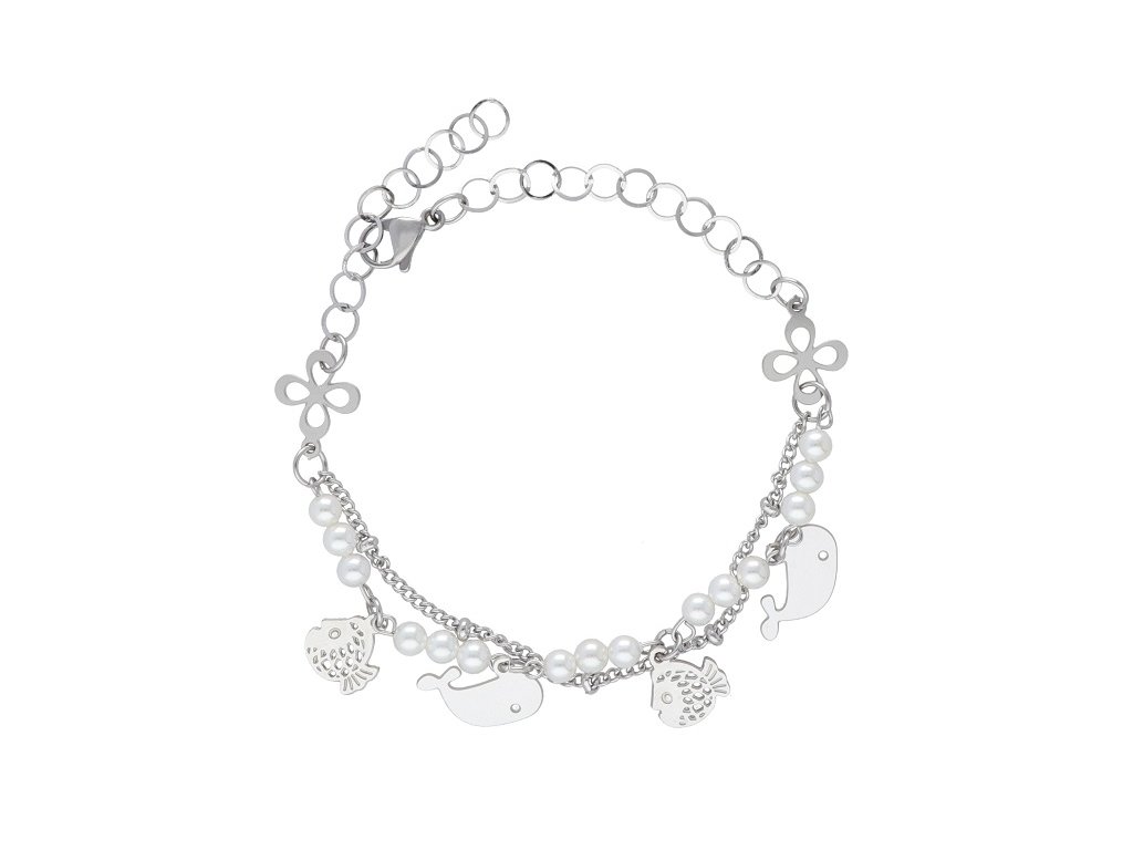 Náramok s rybičkami (6x15 mm) z chirurgickej ocele v striebornej farbe (dĺžka: 170 + 40 mm).