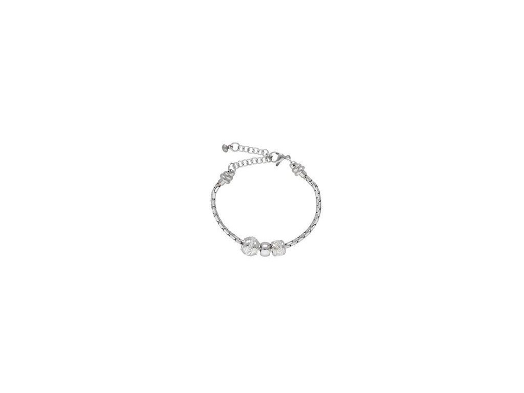 Náramok z chirurgickej ocele v striebornej farbe s korálkami s kryštálikmi, dĺžka: 170 + 60 mm, šírka: 3 mm