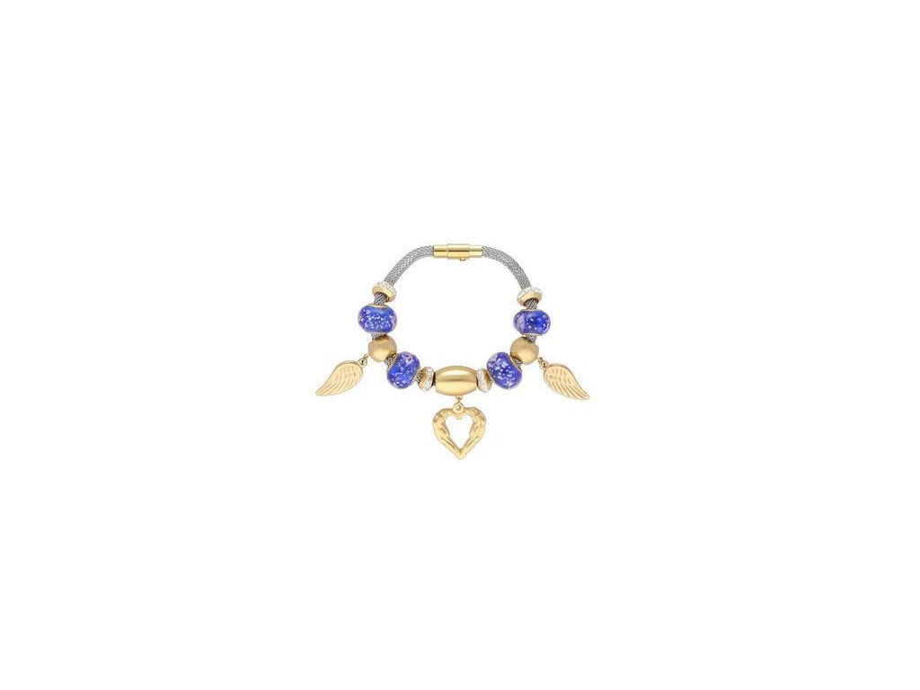Náramok z chirurgickej ocele v striebornej farbe s príveskami a korálkami, dĺžka: 190 mm, šírka: 4 mm