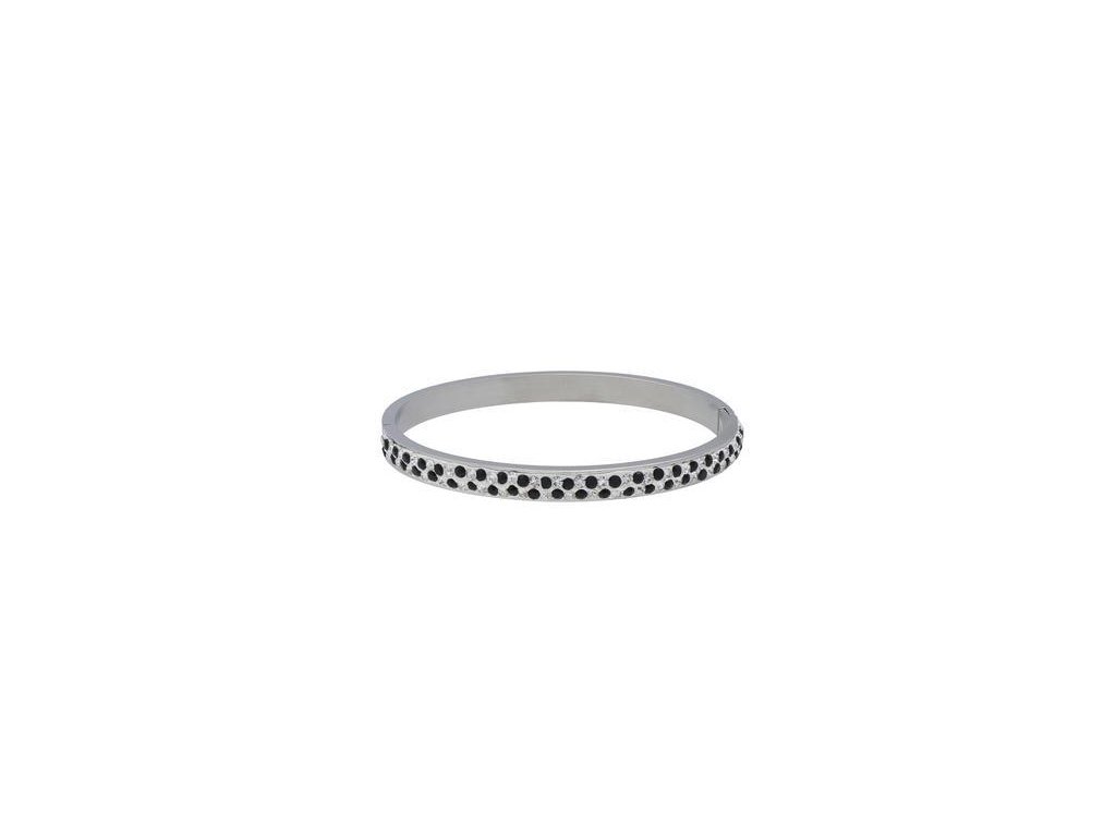 Pevný náramok s čiernymi a čírymi kryštálmi so zapínaním z chirurgickej ocele v striebornej farbe, priemer: 71 mm, šírka: 6,3 mm
