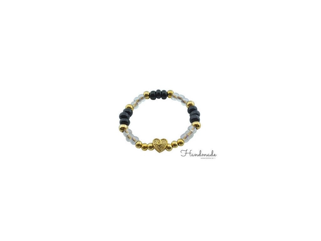 Farebná kombinácia: číra AB / čierna / zlatá. Náramok je navlečený na elastickom vlákne. Náramky vyrábame v univerzálnej veľkosti s dĺžkou 180 mm (vyhovuje na zápästie s obvodom 160 mm).