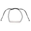 Náramok na šnúrke v striebornej farbe s ozdobnými korálkami vo farbe rose gold z mosadze s detailom so zirkónmi. Veľkosť náramku je možné nastaviť podľa potreby. Nevhodné pre použitie vo vode