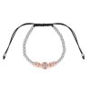 Náramok na šnúrke v striebornej farbe s ozdobnými korálkami vo farbe rose gold z mosadze s detailom so zirkónmi. Veľkosť náramku je možné nastaviť podľa potreby. Nevhodné pre použitie vo vode