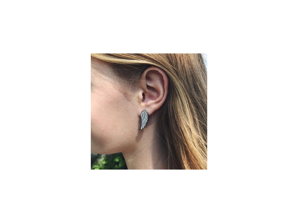 Náušnice z chirurgickej ocele v striebornej farbe, krídla so zirkónmi - rozmer: 27x10 mm, puzetové zapínanie