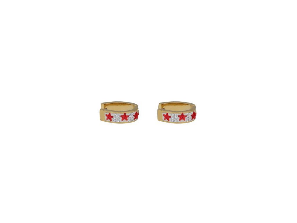 Náušnice z chirurgickej ocele v zlatej farbe oválne kruhy s červenými hviezdičkami z kryštálov - 22x18 mm, šírka: 7 mm