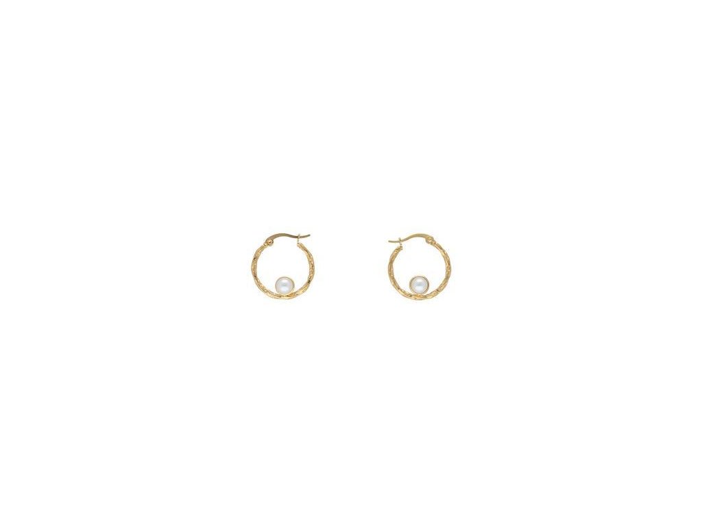 Náušnice kruhy zlaté z ocele s perličkami J116