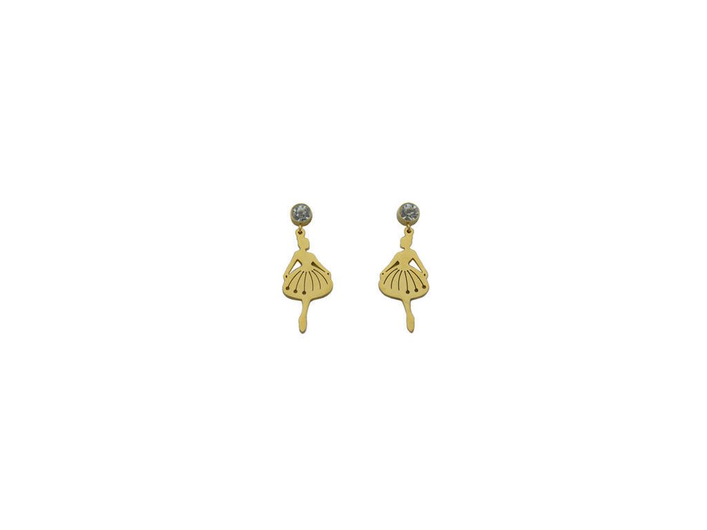 Náušnice z chirurgickej ocele v zlatej farbe "BALETKY" so zirkónmi, rozmer: 38x14 mm, puzetové zapínanie, visiace