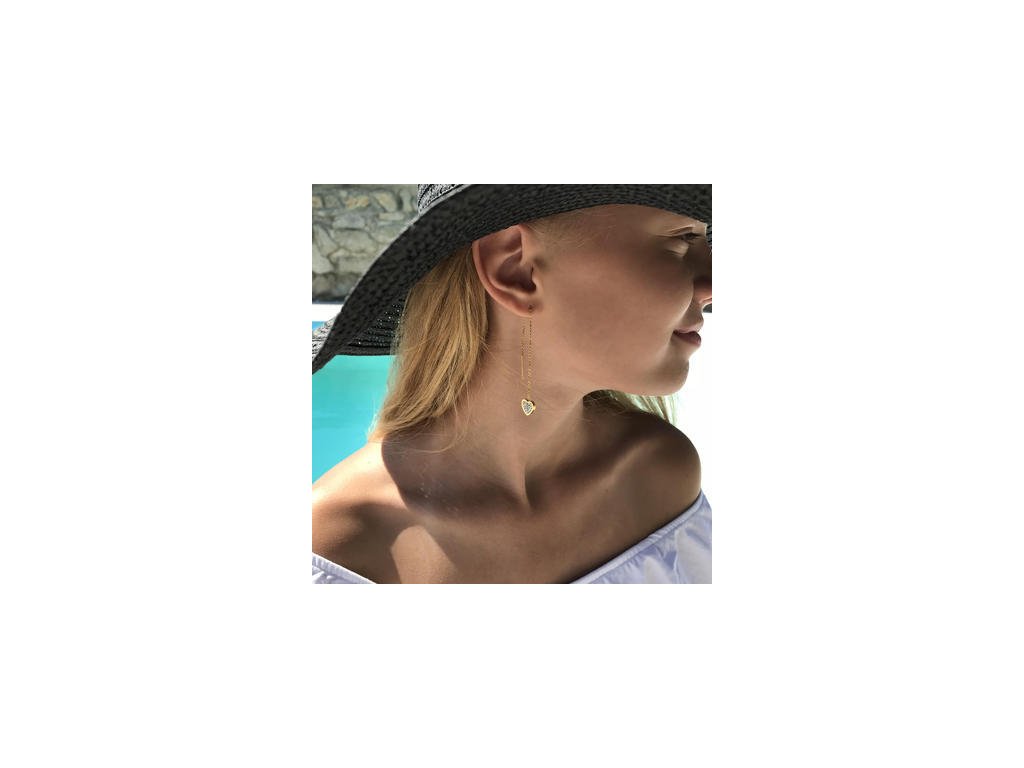 Náušnice z chirurgickej ocele v zlatej farbe so srdiečkami s kryštálikmi, rozmer srdiečka: 10x10 mm, bez zapínania , s retiazkou na prevlečenie cez ucho