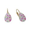 Náušnice z chirurgickej ocele v zlatej farbe s drobnými farebnými perličkami a kryštálikmi, slzičky - rozmer: 23x11 mm, klasické zapínanie