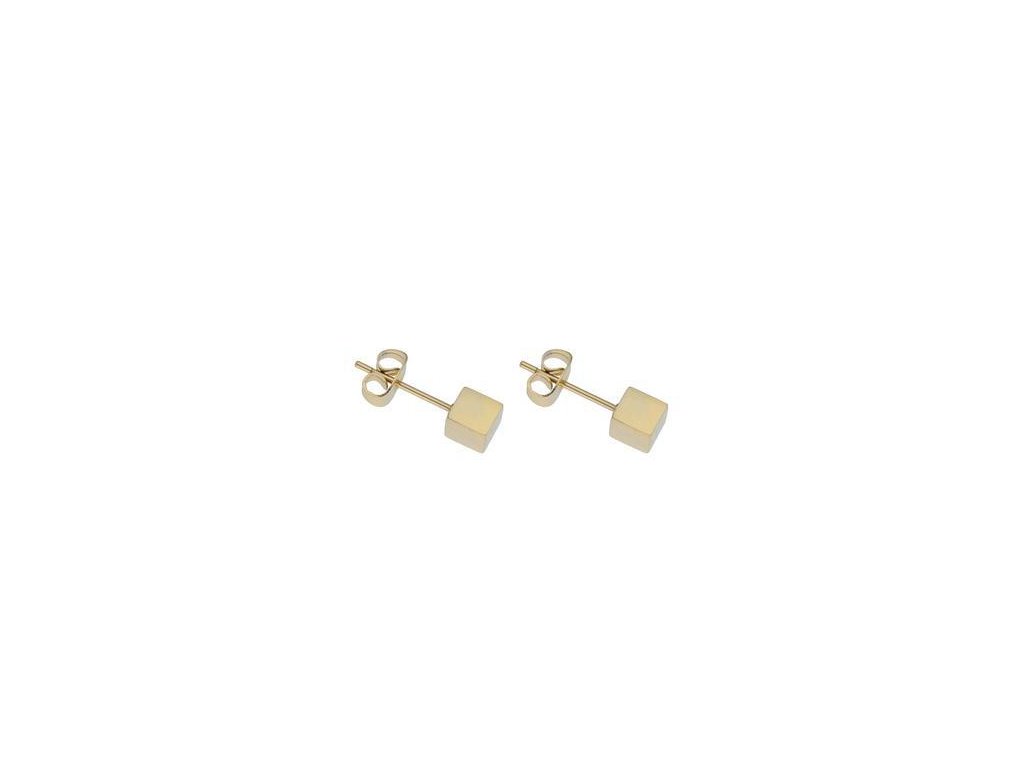 Náušnice z chirurgickej ocele kocky v zlatej farbe - šírka: 5 mm, puzetové zapínanie