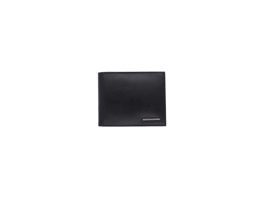 Elegantná pánska kožená peňaženka BELLUGIO v čiernej farbe, s RFID pre ochranu pred čítaním údajov z bezkontaktých kariet. Vnútri sa nachádza 2 x priehradka na bankovky, 1x vrecko na mince, 1 x priehradka na zips, 8 x priehradka na platobné karty, vizitky a pod., 2 x priehradka na fotografie alebo doklady, 2 x veľká priehradka. Vonkajšie zatváranie peňaženky na cvok. Prednú stranu zdobí logo výrobcu.