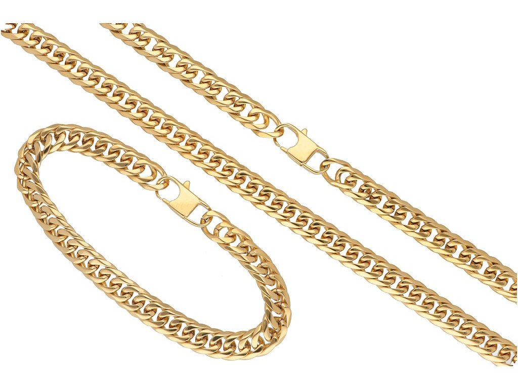 Set šperkov z chirurgickej ocele v zlatej farbe, retiazka - dĺžka: 750 mm, šírka: 9 mm, náramok - dĺžka: 220 mm, šírka: 9 mm