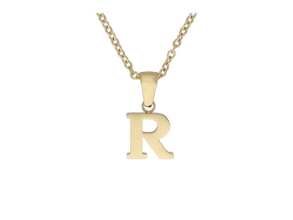 Retiazka (450x1.5 mm) s písmenkom R (9 mm) z chirurgickej ocele v zlatej farbe.