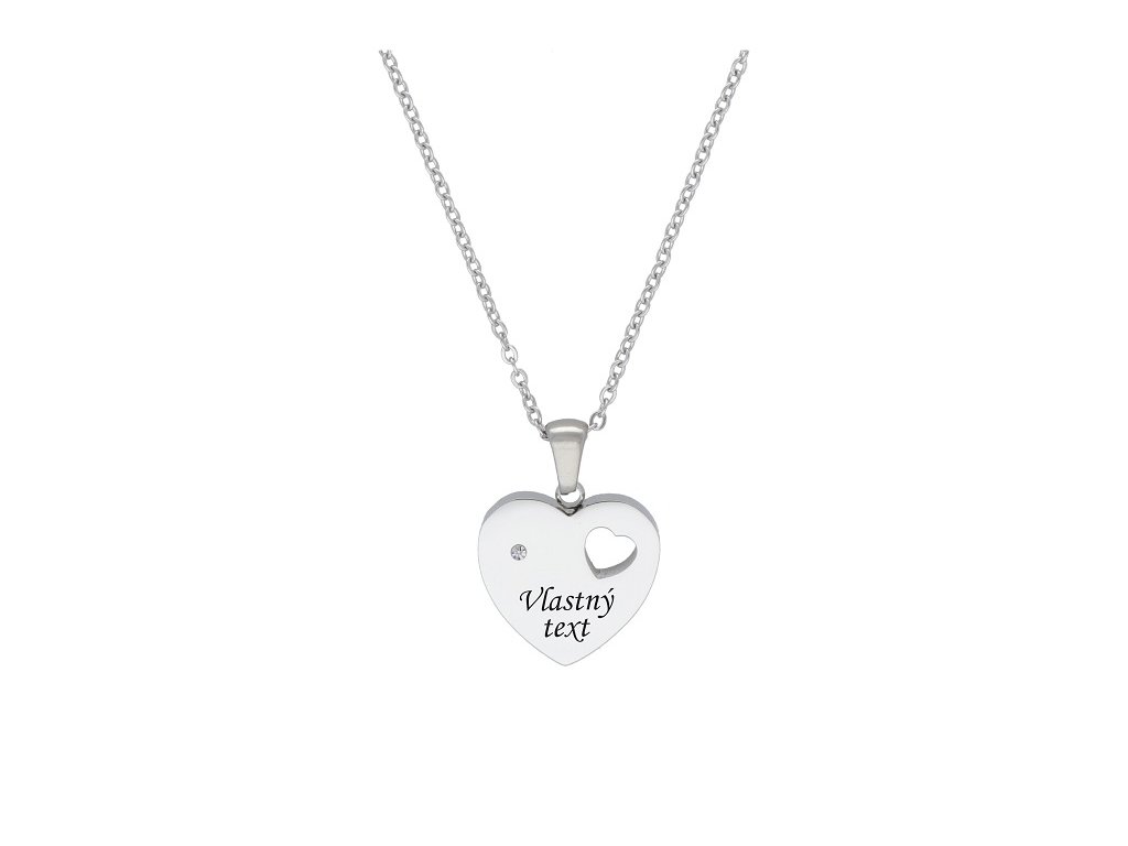 Dámska retiazka strieborná z chirurgickej ocele (400 + 50 mm x 1,5 mm) s príveskom v tvare srdca (18x18 mm) s možnosťou gravírovania textu podľa Vášho želania.
