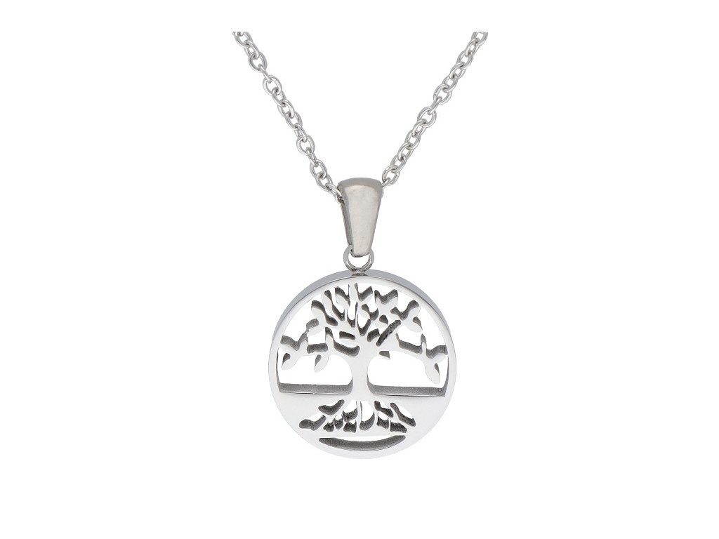 Retiazka s príveskom STROM ŽIVOTA (18 mm) z chirurgickej ocele v striebornej farbe (450 mm x 2,0 mm)