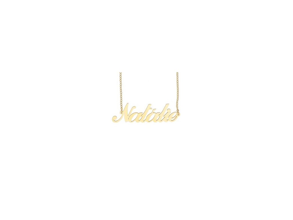 Náhrdelník s menom NATÁLIE z chirurgickej ocele v zlatej farbe. Rozmer nápisu: 48x12 mm, dĺžka retiazky: 470 mm.