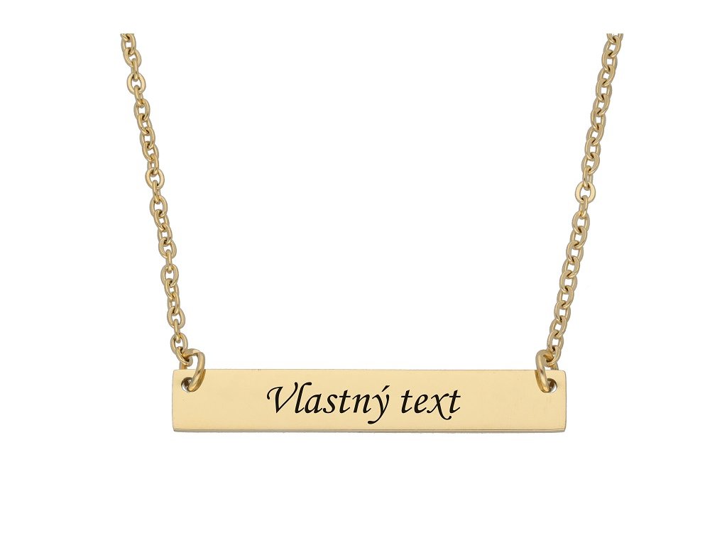 Zlatá retiazka s platničkou s možnosťou gravírovania textu z chirurgickej ocele, dĺžka: 450 - 500 mm, rozmer platničky: 32 x 5 mm.