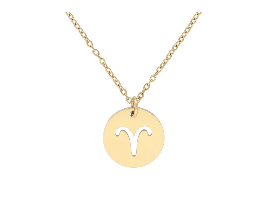 Retiazka s príveskom so znamením BARAN vyrobená z chirurgickej ocele v zlatej farbe. Rozmer prívesku: 20 mm, dĺžka retiazky: 450 x 2 mm.