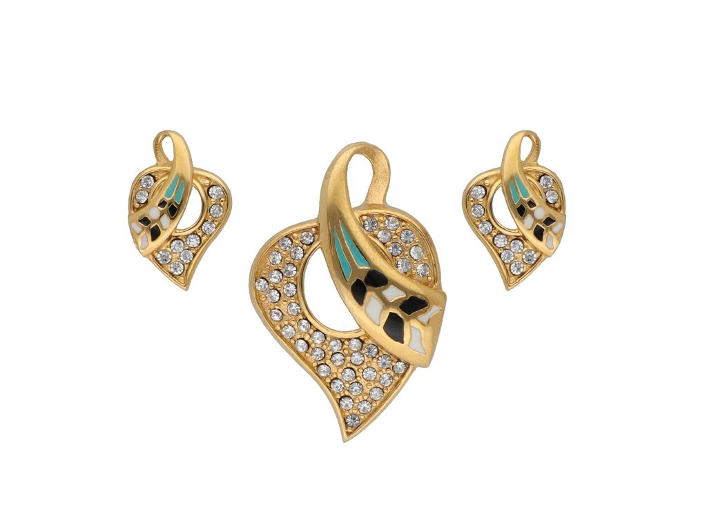 Set šperkov z chirurgickej ocele v zlatej farbe s kryštálikmi, prívesok - rozmer: 40x25 mm, náušnice napichovacie - rozmer: 21x13 mm