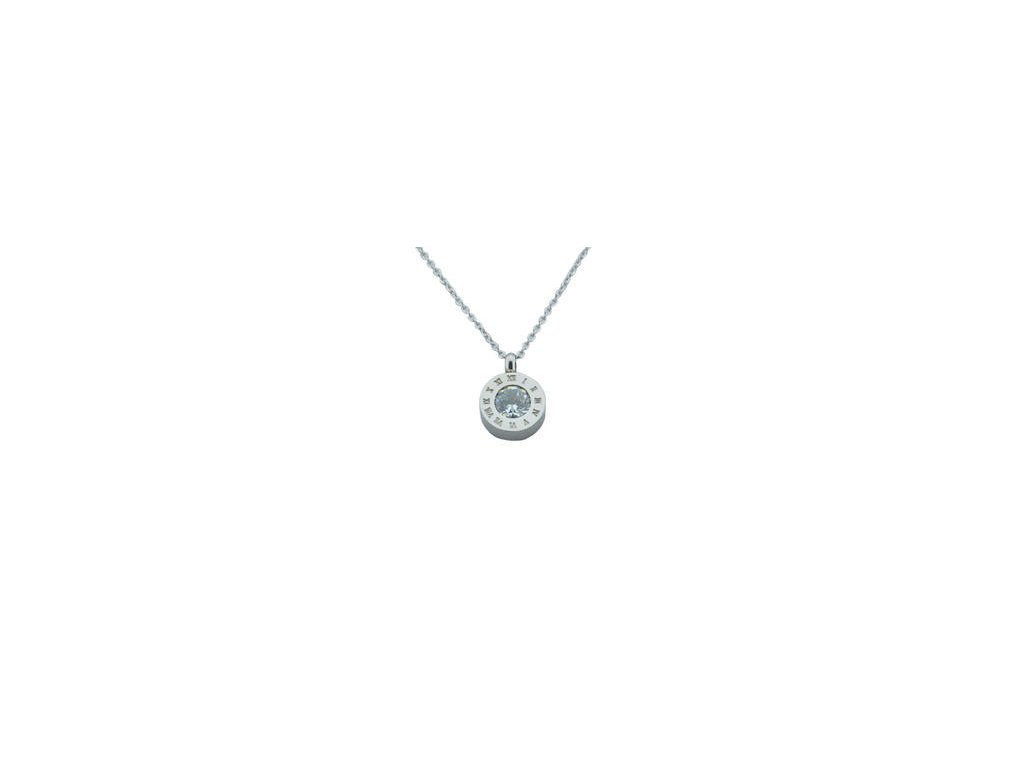 Set šperkov z chirurgickej ocele v striebornej farbe s kryštálmi, prívesok - priemer: 14 mm, retiazka - dĺžka: 500 mm, náušnice napichovacie -priemer: 11 mm. K setu sú pribalené farebné kryštály (červené, fialové, ružové), možnosť meniť farby
